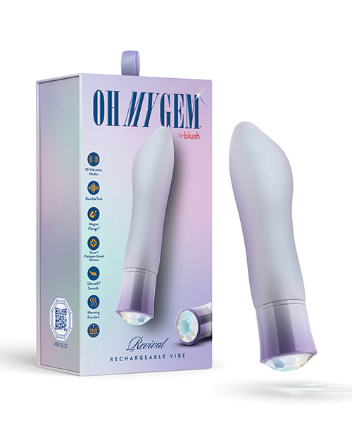 Opal represents confidence and a new start. You hope to always better yourself and embrace your own pleasure and satisfaction in everything you do. Versatile and pleasurable, its the perfect way to indulge your senses. Its time for your Revival! Warms to up to a very comfortable 107 degrees Fahrenheit for increased blood flow and enhanced pleasure. Made from our pure platinum-cured Puria silicone and enveloped with our satin smooth UltraSilk this fierce vibrator offers a smooth and comfortable experience for all users. Water based, hybrid lube compatible. Oh My Gems are hypoallergenic and body safe!