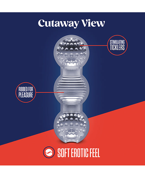 The RIZE! Feelz is loaded with fun! Each compartment features an individual texture for different sensations and unparalleled pleasure. Watch as you play inside the translucent compartments and squeeze for your desired pressure preference during stroking. Feelz is easy to clean and contains no phthalates, paraffins, or latex.