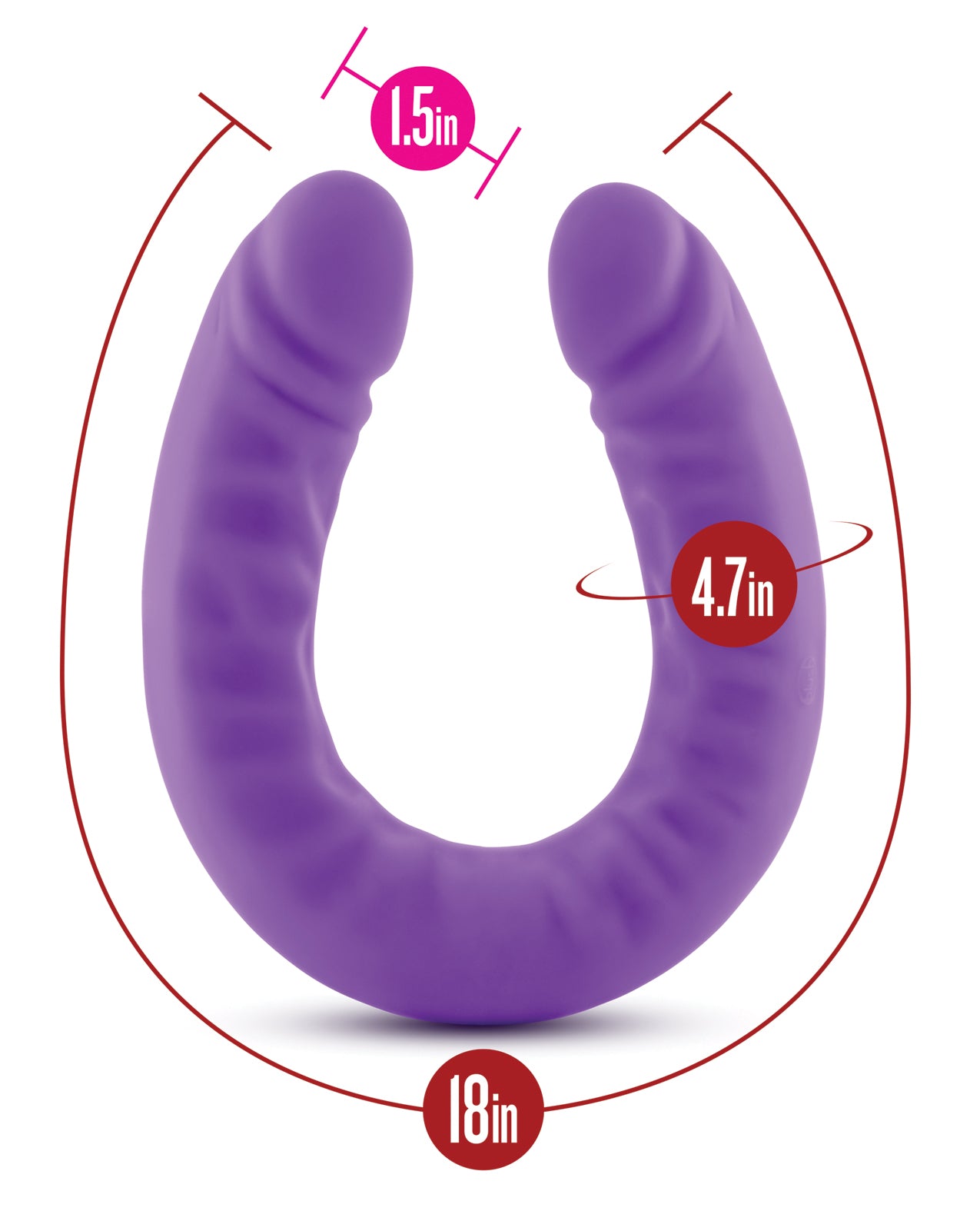 Feeling adventurous? The Rus 18 Inch Silicone Double Dildo is U-shaped, holds a curve, and is loaded with creative possibilities. Use it alone as a penetrative toy with added reach and let the curve guide its way to your G spot. Or go deep and hard into double penetration with yourself or a play partner! Made of 100% platinum cured silicone means it is body safe, nonporous, and easy to clean.