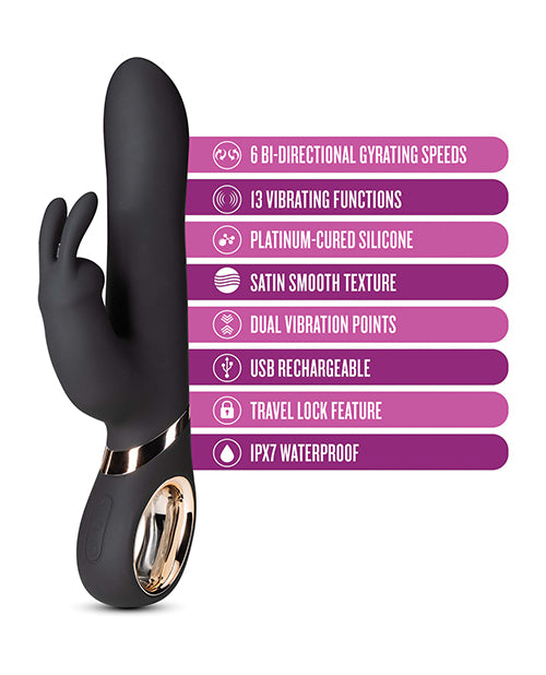 Live lushly! Victoria is a gyrating rabbit with 3 powerful motors ready to deliver pleasure. There are 6 gyrating functions that are reversible as desired for optimal G-spot stimulation, and 13 powerful vibration functions to choose from! Victoria also has a travel lock function so you can take it anywhere with you. This USB rechargeable rabbit is IPX7 waterproof for easy cleaning and bath or shower play! Made of platinum cured Silicone and satin smooth. Victoria is body-safe, phthalate-free, latex free and ready to delight.