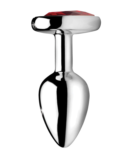 Spark your desire for decadent anal play with this beautiful Booty Sparks plug! Featuring a smooth metal finish in lightweight aluminum, it features a sweet heart shaped gem in a deep crimson red. The slim shaft will keep it from slipping out of place even during vigorous play. You will want to show off your new sparkling booty as you bend over and tease your lover. The nickel free aluminum alloy is nicely weighted and temperature sensitive for the perfect amount of sensation. When play is over, the non-porous material will clean easily without harboring any harmful bacteria. Make that booty sparkle!