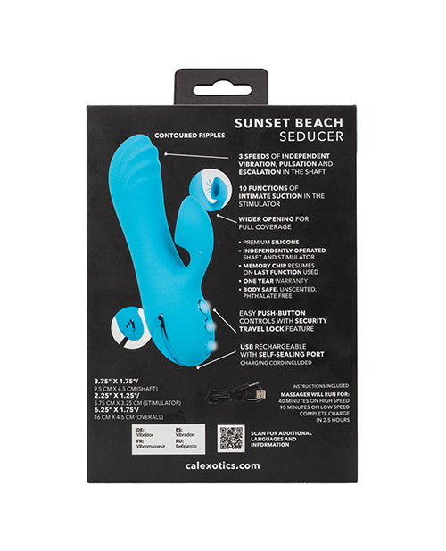 Imagine a rendezvous where every caress mimics the gentle waves and warm embrace of a sunset beach, introducing California Dreaming Sunset Beach Seducer, a compact stimulator that captures the essence of such indulgent moments. This device is designed for those who crave a deep, powerful connection, offering a dual sensation of vibration and clitoral suction that promises to transport you to the peak of pleasure. The shaft of this alluring device is adorned with a sensual texture and offers three speeds of independent vibration, pulsation, and escalation, each designed to heighten your experience. Complementing the shaft, the stimulator boasts 10 functions of independent intimate suction, with a wide opening that ensures maximum coverage and an unforgettably intense sensation. Powered by dual motors, this device is engineered for those who desire a symphony of sensations. The body-safe Silicone material is not only smooth to the touch but also entirely at your command, wherever and whenever you desire. The state-of-the-art memory chip allows you to resume on the last function used, ensuring a seamless continuation of your journey of self-discovery. Your experience is enhanced by a security travel lock feature, providing peace of mind with a simple three-second hold to turn on or off. USB rechargeable for convenience and equipped with a charging cord, it reaches a complete charge in 2.5 hours. Whether you're seeking a quick escape or an extended session, this device runs for 40 minutes on high speed and 90 minutes on low speed. With the California Dreaming Sunset Beach Seducer, experience a full immersion into the rich and sensuous world of pleasure.