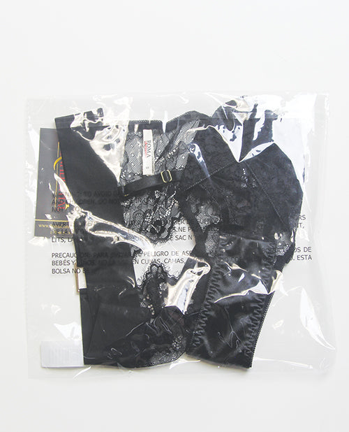Fever Dream Chantilly Eyelash Lace and Stretch Satin Bralette w/Thong - Black 1X