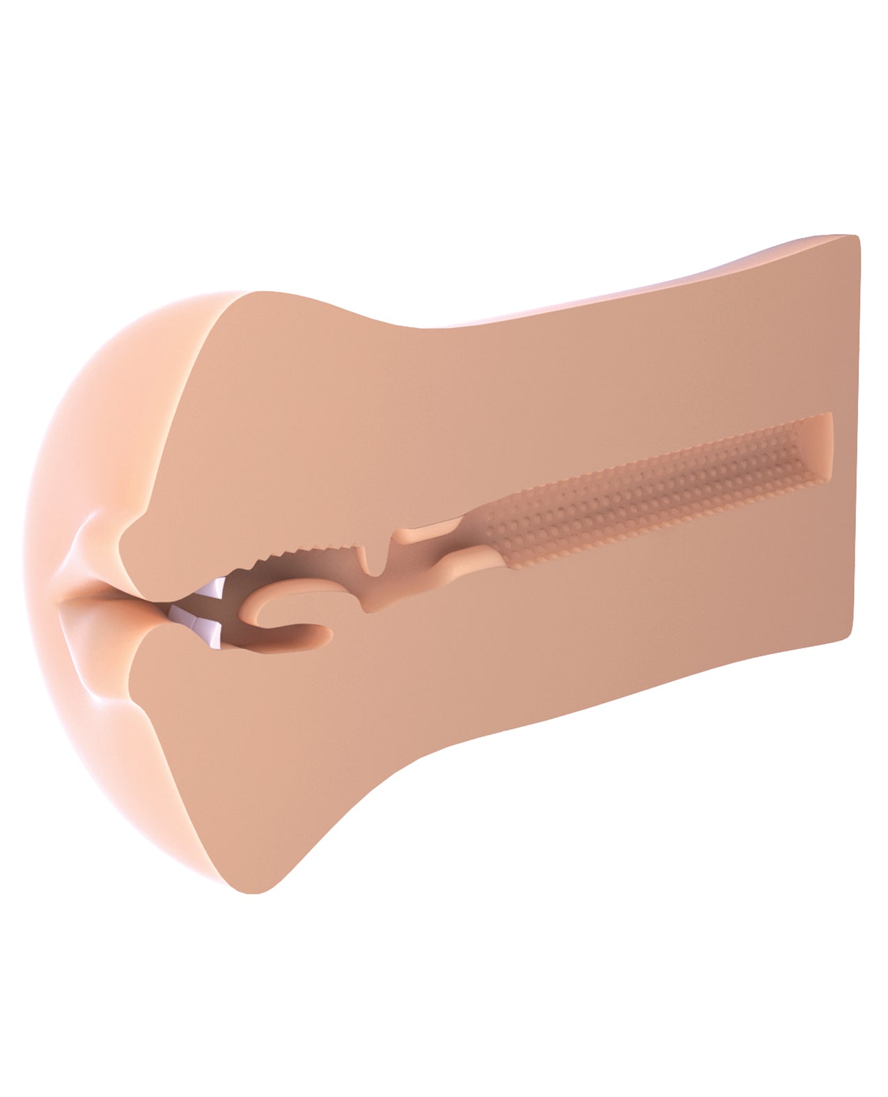 Take your fun on-the-run with Fuck Me Silly To Go! Cleverly-sized to be both lifelike and compact, the proprietary Fanta Flesh(R) and super-soft internal tunnel feel just like the real thing-only better! ?Slide between those luscious lips, past the supple tongue and realistic teeth into the textured throat that's always open and ready to deep-throat your rock hard cock. Both rows of teasing teeth stroke your shaft, while the snug tunnel with its closed-end will milk you dry every time.