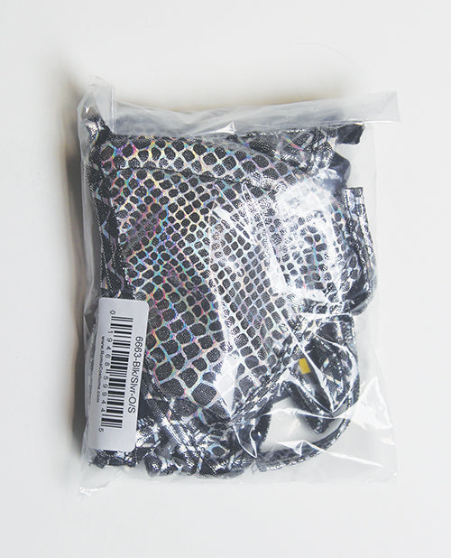 Iridescent Snake Print Triangle Top w/Thong 2 pc Set - Black/Silver O/S
