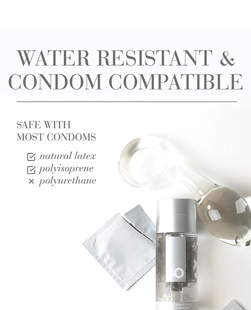 JO All-In-One Sensual Massage Glide is our premium silicone-based massage formula, offering a long-lasting, buttery feel that enhances every stroke and caress. Smooth and satisfying, it dries down to a matte, soft-touch finish. One drop of All-In-One Sensual Massage Glide is equal to ten drops of traditional massage oil, so a little goes a long way! Fragrance-Free is both a lubricant & massage glide go from sensual massage to penetration with no pause.