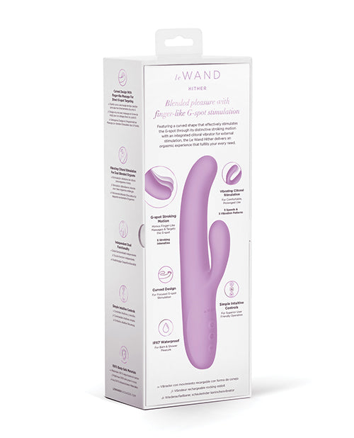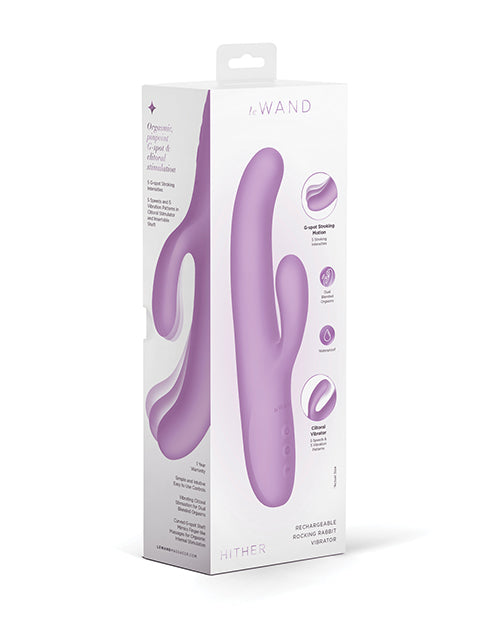 Featuring a curved shape that effectively stimulates the G-spot through its distinctive stroking motion and an integrated clitoral vibrator for external stimulation, the Le Wand Hither is a rechargeable rocking rabbit vibrator that delivers an orgasmic experience that fulfills your every need. Vibrating Clitoral Stimulation for Dual Blended Orgasms. Independent Dual Functionality. Curved Design with Finger-Like Massage for Direct G-Spot Targeting . Splashproof for Some Steamy Shower Enjoyment. Simple Intuitive Controls for Superior User-Friendly Operation. One Yeaer Warranty.