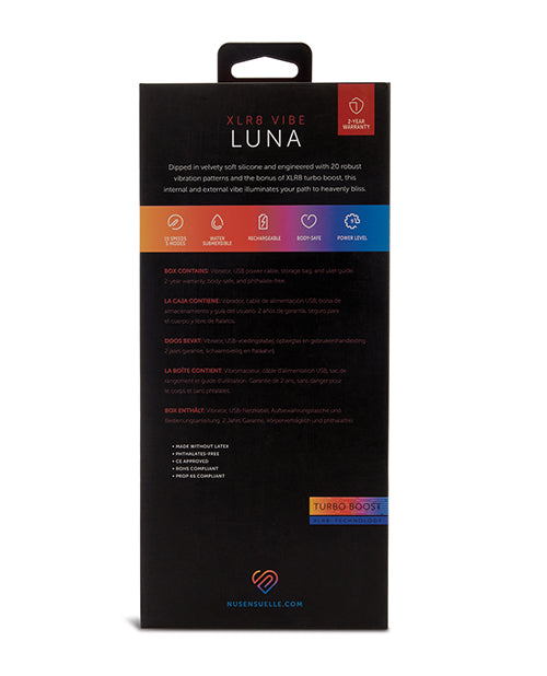 LUNAS NEW VELVET TOUCH LIQUID SILICONE is irresistibly soft, enveloping your erogenous zones in pure ecstasy and allowing you to melt into the magic of your desires. Perfectly designed for internal and external play, Lunas angled head and 20 powerful vibration patterns light your way to heavenly bliss. Ignite your passions with the XLR8 turbo boost and find yourself over the moon.