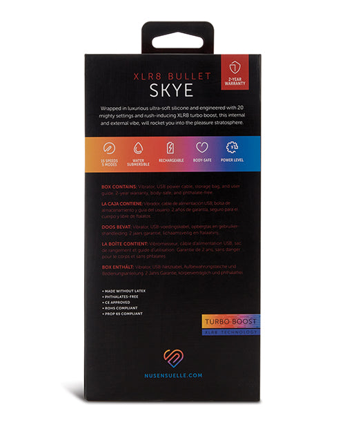 EXPERIENCE THE PINNACLE OF TOUCHand heightened sensory pleasure with the Skye XLR8 Vibe, now enveloped in our luxurious velvet touch liquid silicone. This ultra-soft material offers a cloud-like sensation, enriching every intimate moment. Meticulously designed for both internal and external play, Skyes bulbous head ensures expansive coverage, while its 20 innovative settings deliver unparalleled pleasure. For an exhilarating rush, activate the XLR8 turbo boost and ascend into the pleasure stratosphere.