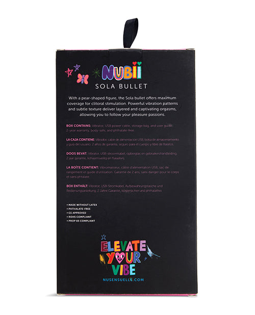 Meet Sola, a curvaceous twist on a traditional bullet. With a pear-shaped figure, the Sola bullet offers maximum coverage for clitoral stimulation. Sola delivers three soothing speeds and four unique vibration patterns. We added subtle texture to accentuate its ultra-soft and flexible body, allowing for layered and captivating orgasms. Powerful and discreet, this beauty fits comfortably in your hand and is perfect for thrilling solo or indulgent couple play. Solas unmatched versatility allows you to follow your pleasure passions. 3 speeds + 4 pulsations. Delicate texture. Flexible body. Designed for clitoral stimulation. Travel-friendly. Nubii motor. Power level: 1. Motor sensation: buzzy + subtle. Rechargeable. Water submersible. Body-safe. Two Year Warranty.