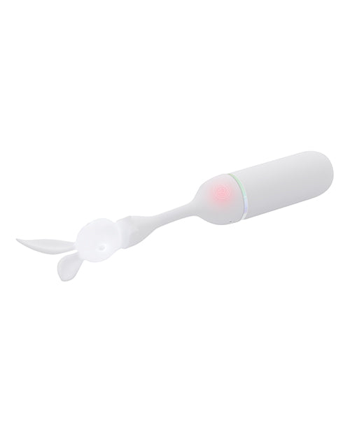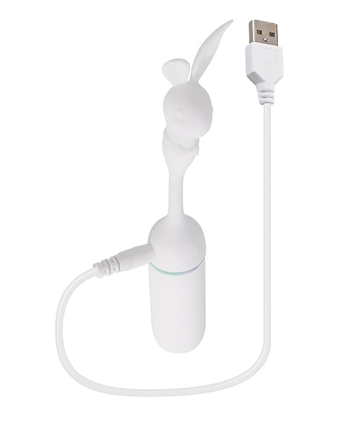 Who needs a four-leaf clover when youve got a powerful Lucky Charm to make your wishes come true! Explore the unique sensation of a floppy rabbit head atop a flexible cord attached to a chunky vibrating base. The light-up bunny head features enchantingly playful big ears that tickle and tease you as they buzz and bend against your clitoris a delicious sensation thats only matched by the deeper satisfaction of the toys handle end that goes deeper for intense internal vibrations. Press your luck under water as this toy is completely submersible. Five Year Warranty.