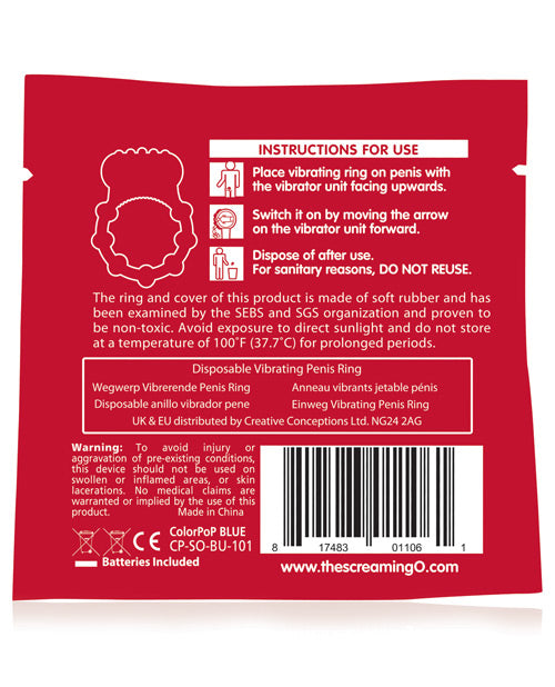 The Screaming O Vibrating Ring is the award-winning sex secret that helps couples have better, more satisfying sex! With pleasure knobs for him and ticklers for her, couples enjoy mutual stimulation with vibration that buzzes throughout the entire ring. Now available as a convenient ColorPoP Quickie, couples can enjoy vibrant vibration at home or on the go with a disposable design they can take anywhere!