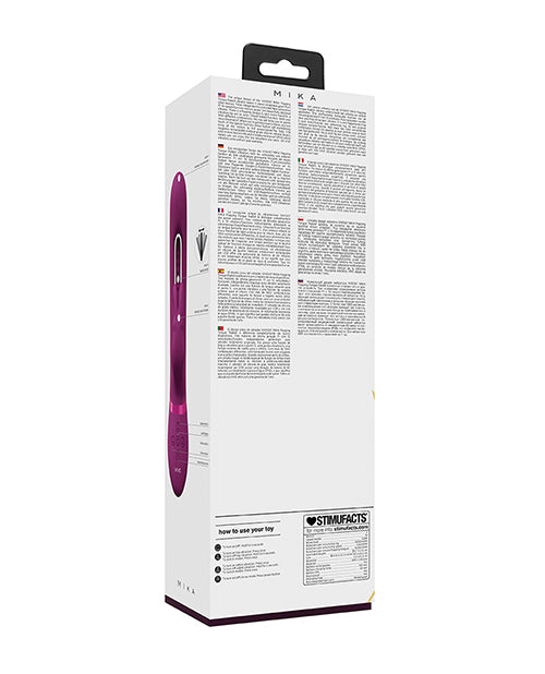 The unique design of the VIVE057 MIKA Flapping Tongue Rabbit vibrator makes it stand completely apart from other devices. Three independently controlled New Generation F1 10-speed/function motors power this beautifully designed vibrator. There is a flapping tongue G-spot motor function, a vibration tip and an outer clitoral Rabbit function. With over 1000 different combinations this toy will bring you to places never dreamed of. When you're getting close to climax, just one touch of the special function climax button will immediately bring all the motors to full power/speed.The fully USB magnetic rechargeable medical-grade silicone vibrator boasts a 60-minute battery life and is totally waterproof (IPX6) which means you can enjoy this toy anywhere you want. All VIVE vibrators come with a 1-year warranty.
