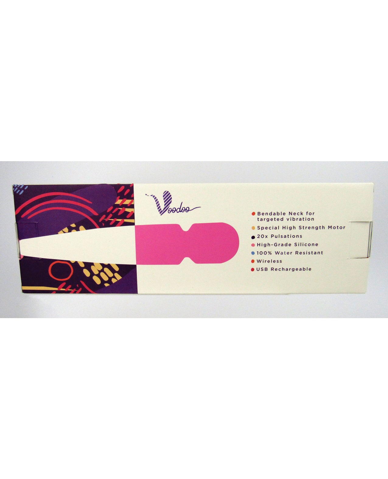 Voodoo Halo Wand. I'm the classic, original version of the magic Halo Wand. The "little black dress" of vibrators, I'm simple to use with a high-powered motor to ensure you reach the big 'O' every time. Perfect for solo play or adventuring with a partner, you'll wonder how you lived without me. I deliver earth-shattering vibrations through my cushioned massage head with 10 pulsation frequencies. I come with a luxe velvet pouch for discreet pleasure anywhere. Bendable Neck for targeted vibration. Special High Strength Motor. 100% Water Resistant. USB Rechargeable.