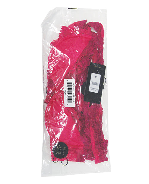 Yvone Lace Bra w/Removable Straps, Garter & Tanga Panty 3 pc Set - Pink 1X/2X