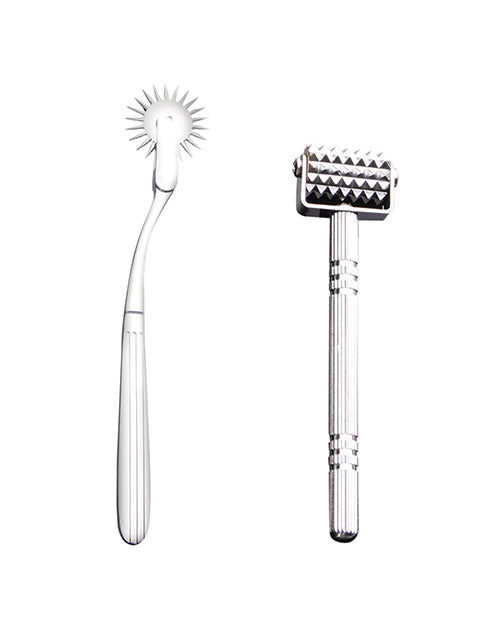 Amaze your partner with visual and sensational delights! Dive into thrilling sensations with this complete violet wand kit designed for electrifying fun. Packed securely in a sturdy metal aluminum and wood case, it includes everything you need to create an unforgettable and electrifying scene. Experience the mesmerizing purple glow emitted from each of these classic violet wand shapes! Explore the unique sensations of each electrode and try out the comb, mushroom, pinpoint, spoon, balltip, and plasma globe. Enjoy the steady, strong electric current of these solid-state wands for smooth, uninterrupted play. Adjust the intensity to cater to each person you play with. Go beyond the glowing glass and elevate your experience with conductive metallic tools like the Wartenberg wheel, Rollenstein, and ball chain flogger. Get intimate and use the body contact plate, allowing your entire body to transmit tingling electricity with every touch. Just plug in and playno power box needed!